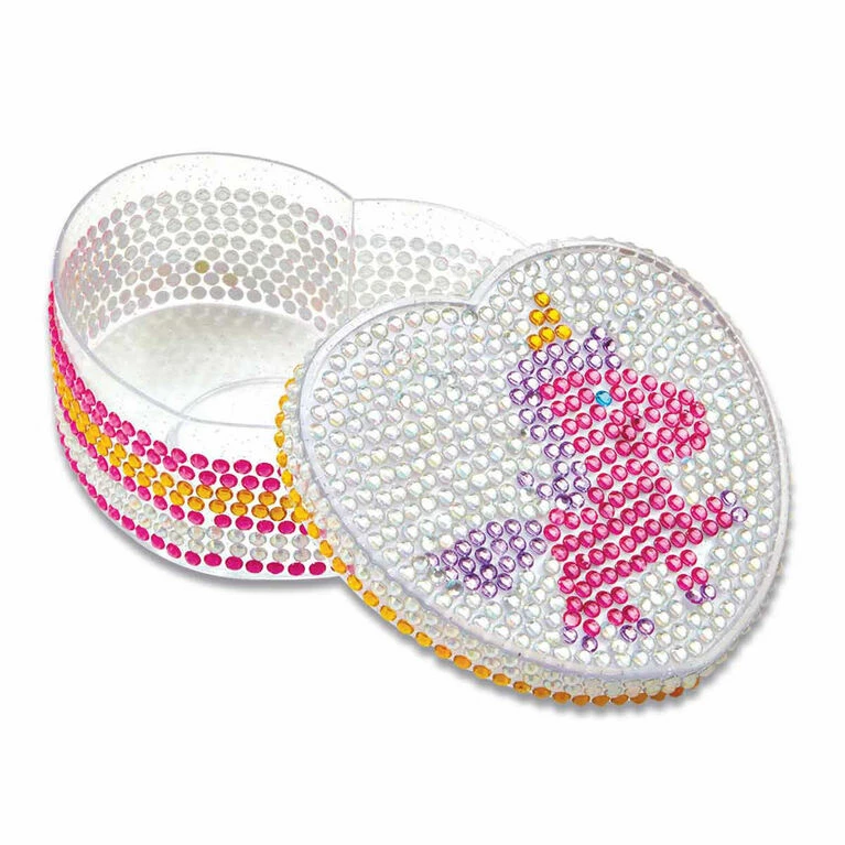 Set includes 2 cases: 1 Heart Case With Lid, 1 Butterfly Case With Lid, 2,000 Colourful Gems, 6 Design Templates and 1 Instruction Sheet.