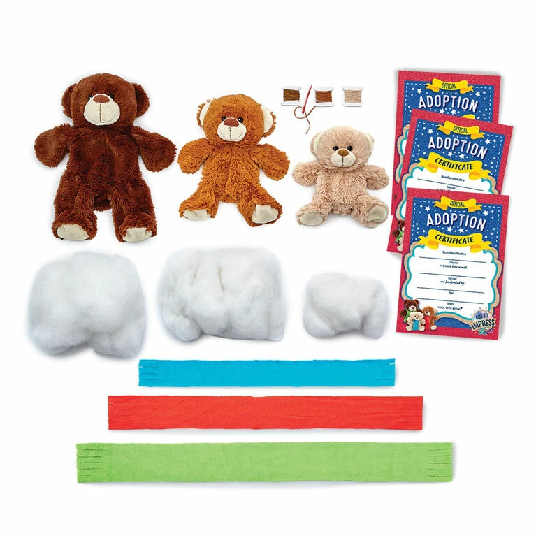 Each of the three bears in this kit has super-soft and fuzzy fur, perfect for bedtime. Use the stuffing and thread to fill and bring to life Daddy Bear, Mummy Bear and Baby Bear. When you’ve finished building your bears you can name them and fill in their adoption certificates. This awesome set even includes three soft colorful scarves for your bears to keep warm.
