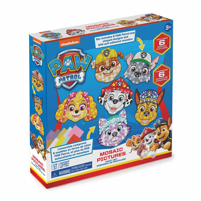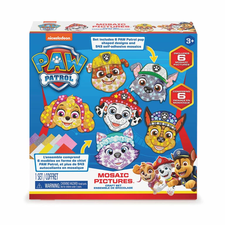Create colourful PAW characters with your first mosaics craft set. Easy to use, simply peel off the bright and glittery stickers and match them to their correct place on the pup cards. When you fill up the card fully, you will see your PAWsome creation come to life. With everything you need to create 6 colourful mosaic pictures, the set includes over 500 sticky mosaics.