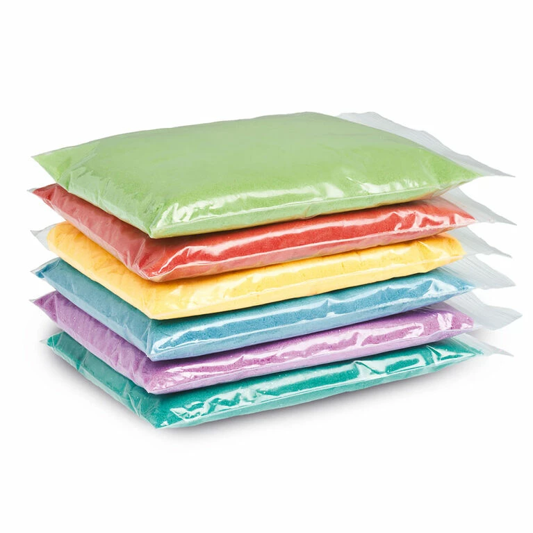 The bags of sand are resealable, and the set comes with a play tray for mess free fun! Best of all, the sand never dries out so you can play again and again!