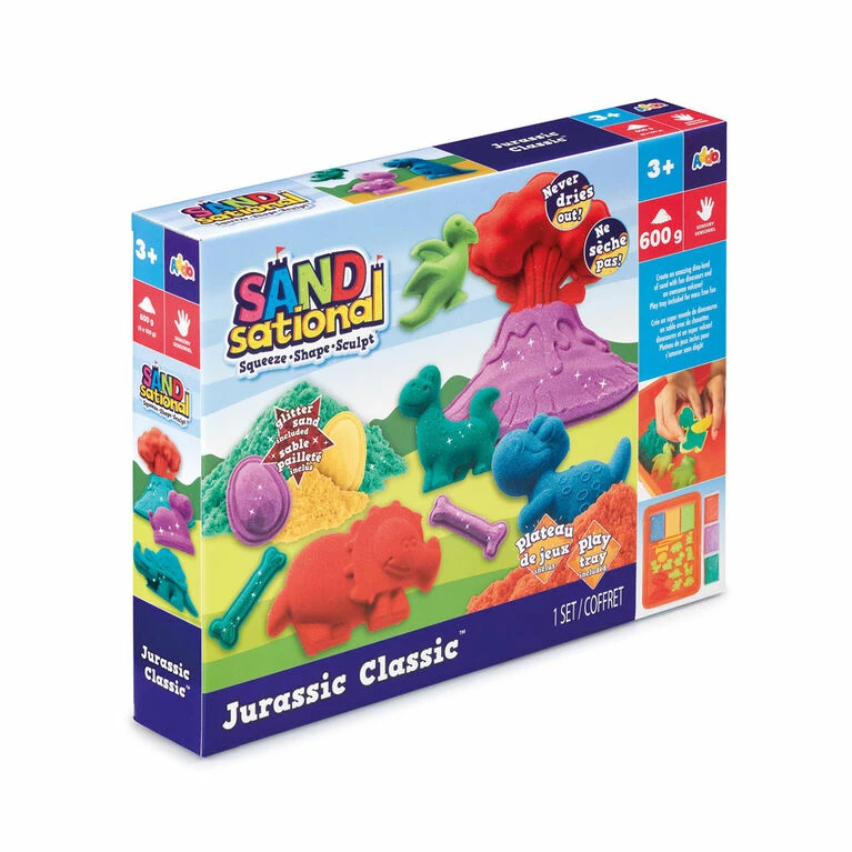 Squeeze, shape and sculpt sand to discover friendly dino’s and embark on an exciting adventure with SANDsational Jurassic Classic.