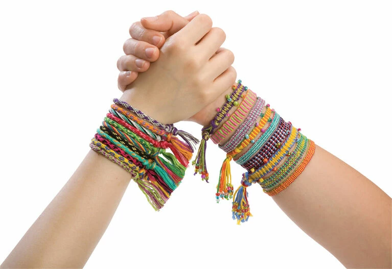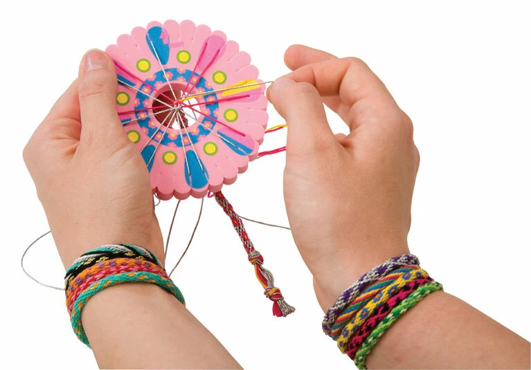 ALEX DIY Friends Forever jewelry kit lets young ones make colorful friendship bracelets the easy way. Designed for crafty kids ages eight and up, this kit includes the friendship wheel, a handy tool that simplifies the weaving process so you can make as many bracelets as you have friends. The kit contains 22 different colors of string, beads, needle, and color-coded looms that can be used again and again with other string. Everything comes in a take-me-anywhere suitcase so you can make bracelets on the bus, in the car, at your friend’s, and more. Includes 4 color coded looms, 22 colors of embroidery floss (26ft / 8m), beads (0.3oz / 8g), beading needle, instruction book, and carrying case.