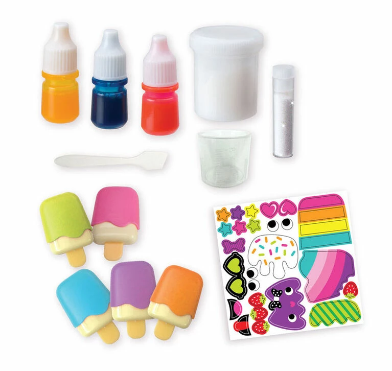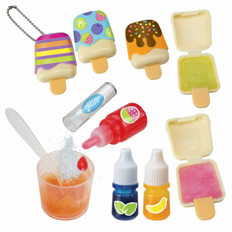 ALEX Spa Mix and Makeup Lip Shimmer lets you mix your own colors and flavors of lip gloss. Stir up your own signature colors and yummy flavors for a gift that’s totally unique. Store it in the ice pop shaped containers, as well as decorate them with stickers. Each container has a key chain attached so they’re easy to carry to the mall, school, sleepovers, concerts or wherever! Includes 5 ice pop containers with keychains, 3 bottles of color / flavor drops (0.15oz/4.4ml each), lip shimmer base (1.23oz/35g), rainbow glitter (0.4oz/1g), 28 stickers, mixing cup, stir stick and instructions. Recommended for age 6 years of age and up.