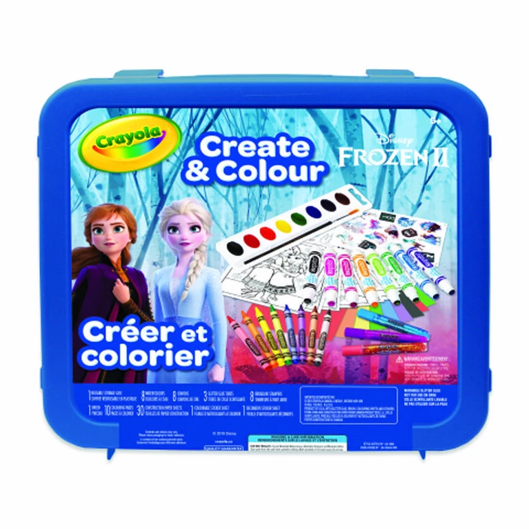Fans of Disney’s Frozen will delight in the Disney Frozen 2 Create & Colour Case by Crayola. Frozen fans will love to colour;decorate;and embellish the Elsa;Anna;and Olaf colouring pages along with other beloved Frozen 2 characters! This case features 8 watercolour paints;3 tubes of glitter glue;8 metallic crayons;8 stamper markers;10 Frozen 2 colouring pages;30 construction paper sheets;1 colourable sticker sheet and plastic storage case. The portable carrying case keeps the art supplies organized and easily accessible. This case makes a great gift for girls and boys who love the Frozen 2 movie!