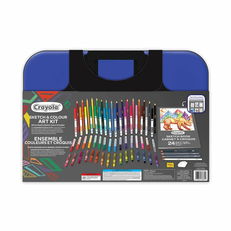 R Exclusive, only available at Toys R Us Canada. The Crayola Sketch and Colour Art Kit comes with 70 pieces and a sketch book – all the art tools you need to sketch, colour and create wherever you go! Inside the sleek, soft shell case you’ll find 16 crayons, 16 coloured pencils, 4 sketch pencils, 16 fine line markers, 16 Pip-Squeaks markers, 1 sharpener, 1 easer and a 24 page sketchbook. There’s even tips and tricks so budding artists can practice advanced colouring and sketching techniques.