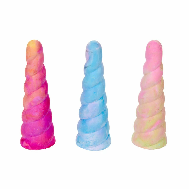 Kids will love creating giant magical outdoor art with Crayola Sidewalk Chalk Unicorn Horns. With magical swirls of colour in each piece you can create imaginary worlds on your sidewalk or driveway! Colours rinse away with a garden hose or the next rainy day. This set makes a great gift for girls and boys, encouraging outdoor play and creative expression. Features 3 unicorn horn shaped sidewalk chalk sticks for colourful outdoor play! Available in 2 enchanting colour collections.