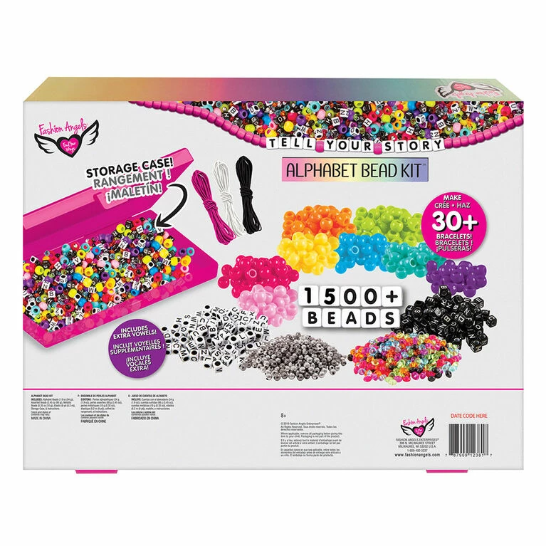 Tell Your Story with Fashion Angels! Wear your story on your wrist when you design a message or name bracelet using the many different styles of alphabet and colorful roller beads included in this super kit. With over 1500 beads, the possibilities are endless for message and name bracelets. We have included 3 different colors of elastic cording, enough to make over 25 bracelets! With that quantity of beads and cording, you will be able to supply all of your friends and family with name and message bracelets! Or use this kit to start your own alphabet bead bracelet business! Entrepreneurship starts right here. This kit makes an incredible birthday or holiday gift but can also be used as a craft activity for a youth group or birthday party and everyone gets to take a bracelet home as a party favor!