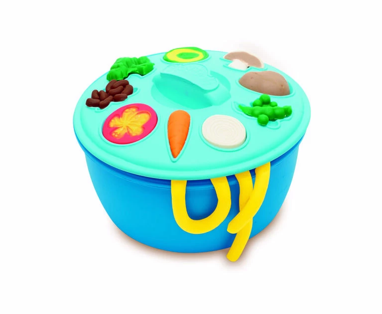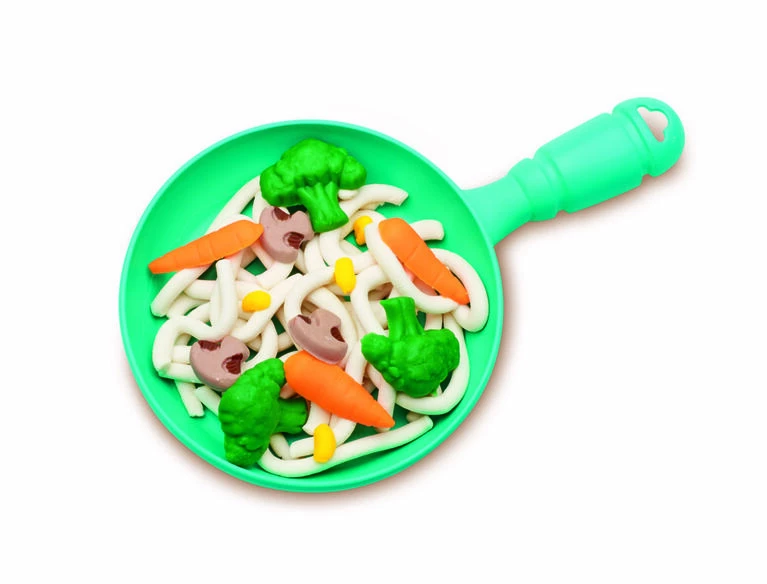 Things are getting busy in the Play-Doh kitchen! Create silly snacks, make-believe meals, and delightful pretend desserts with lots of chef-themed Play-Doh tools. Complete with pots and pans, fun gadgets and utensils, pretend food stampers, and even a ravioli roller, creativity is sure to be cooking all day. With Play-Doh Kitchen Creations, the best ingredient of all is imagination!