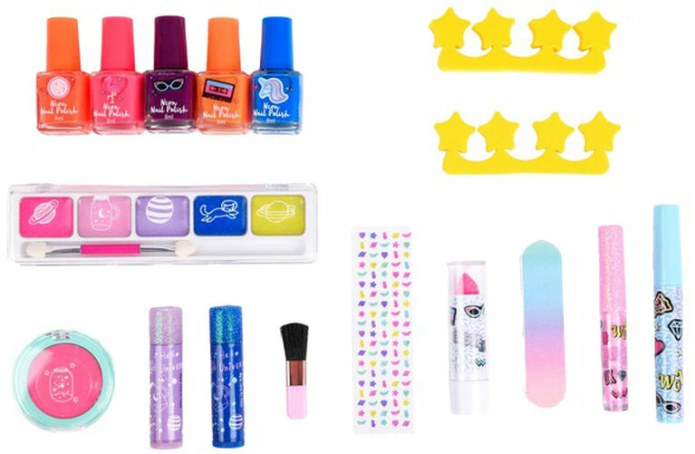 All the makeup a girl needs is the Create It! Makeup Set Neon Glitter Box. Create glittery lips, color changing lips, dyed hair and shiny nails with this extensive set.