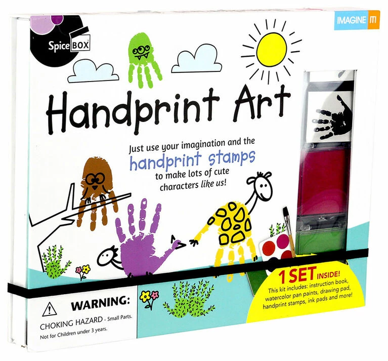 SpiceBox Imagine It Handprint Art Art as unique as you are! Use the special handprint stamps, colorful ink pads and paints to create cute animals and other characters. Fill up the fun scenes in the art pad with your fantastic stamped creations!