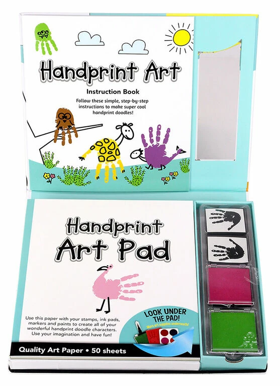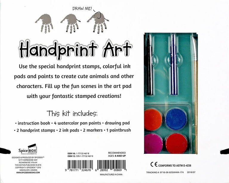 - COMPLETE KIT INCLUDES: 1 instruction book, 4 watercolor pan paints, drawing pad, 2 handprint stamps, 2 ink pads, 2 markers, paintbrush