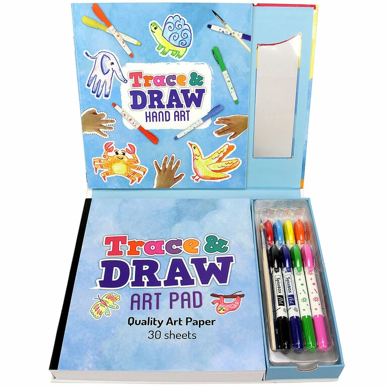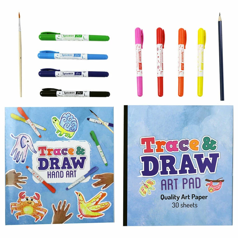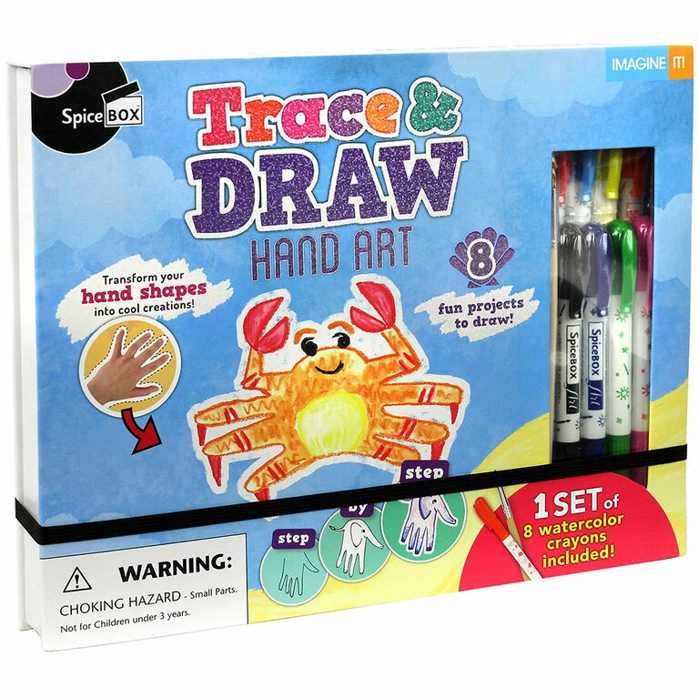 SpiceBox Imagine It Trace and Draw Hand Art Your unique hand shapes can create some amazing art! Trace your fingers and hands to discover how to turn your prints into awesome animal characters. Watch as the watercolor crayon lines magically transform into paint with just a few drops of water.